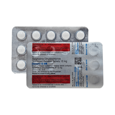 Zevert 12 SR Tablet is used to prevent and treat a disorder of the inner ear known as Ménière’s disease. The symptoms include dizziness (vertigo), ringing in the ears (tinnitus), and loss of hearing, probably caused by fluid in the ear. This medicine helps relieve the symptoms by reducing the amount of fluid.