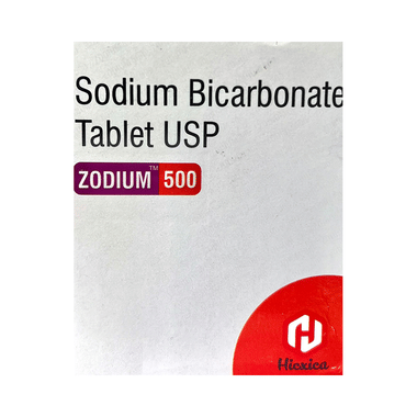 Zodium 500 Tablet relieves irritation by producing carbon dioxide, which neutralizes the acid present in the stomach. It also increases the pH of blood and urine, thereby correcting acid indigestion, heartburn. Increaseitionally, it helps in the removal of toxic substances from the body in certain types of poisoning.