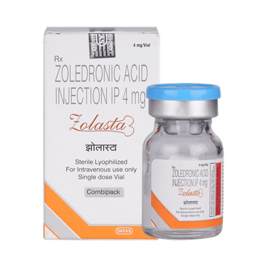 Zolasta 4mg Injection is given by a doctor or nurse. How much you are given, and how often, will be decided by your doctor. It may just be a single injection or you may need regular injections depending upon your underlying condition. Your doctor will ask you to drink plenty of water before the injection, to avoid getting dehydrated. It may take several days to get the full benefit of this drug. Zolasta 4mg Injection is only part of a treatment program that may also include changes to your diet and taking calcium and vitamin supplements.