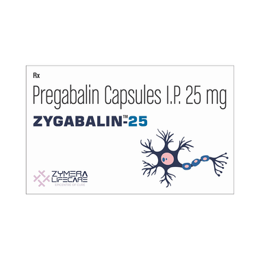Zygabalin 25 Capsule is a medicine used to relieve pain caused by nerve damage (neuropathic pain) due to diabetes, shingles (herpes zoster infection), spinal cord injury, or other conditions. It is also used to treat widespread muscle pain and stiffness in people with fibromyalgia.